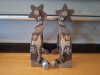 Nice big pair of D. Pollard 941 spurs. Rowels are just over 2", bands are 1 1/8", shanks are 2 1/2" to the rowel pins. 3 1/8" opening. Good pair of spurs by the late maker. Thanks