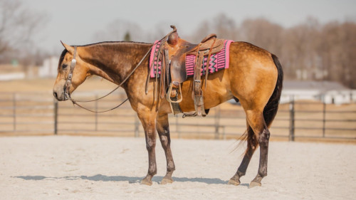 Corbin is an easygoing, kind gelding. Ge excels.out on the trails, crosses bridges, creeks, and logs with ease. He is also great in the arena, picks up either lead, neck reins, and sidepasses. He’s fine with tarps, ball, and obstacles. He can be your next trail or ranch partner.