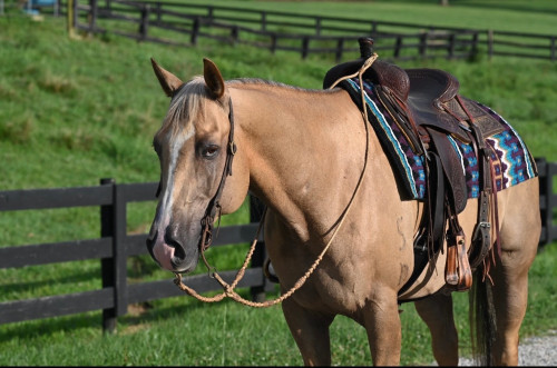 If you are looking for a real deal ranch horse, Deets is your guy! This horse has been a real ranch horse all of his life and knows his job, and the best part is, he is good at it! This beautiful palomino gelding stands 15’2 and is stout! Deets will work cattle all day with ease, drag calves to get branded, will catch and rope anything in an open field and so much more! He is excellent on trails and will also ride inside and outside with no issues. He is great around kids, cattle, dogs and whatever else you may encounter. This horse is as pure as the day is long! He loads, ties, stands great for the farrier, gets along great with other horses, easy to catch and haul! If you are looking for your next partner and best friend on the farm, ranch or in the arena, Deets is here to please! He is currently located at Fraley Performance and Sale Horses and they will be happy to answer any questions you may have! Matt Fraley (740)395-4246 or Lindsey Fraley (740)935-2644! Please reach out, we will be happy to help!