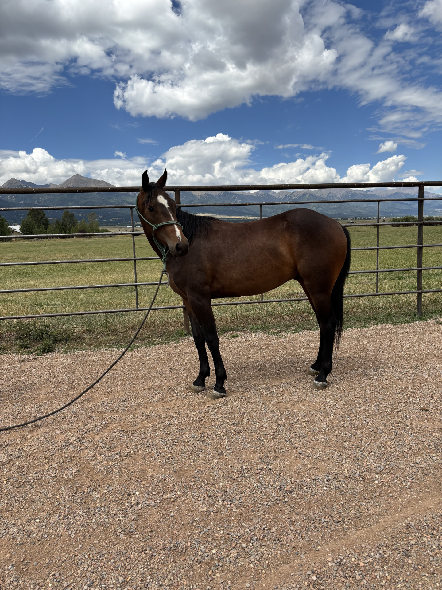 “Peppys Little Cookie” is a 2023 solid APHA gelding standing 14.1 hands, and is expected to mature to 15 hands. “Cookie” has had a solid 60 days of training this summer and fall, and will be a gentle trail horse and rope horse prospect. Cookie was home-raised and we have owWned his dam’s family going back 4 generations, some of which were exported to Ireland and were some of the first Paints to be exported there! Cookie has a line going back to Peppy San Badger on his dam’s side. He is currently in training with Kaylene at Little Horn Ranch - (719) 221-2552.