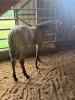 Nice dun filly. This one will grow up to be a big mare w a lot of bone and foot, big hip and a gorgeous head. Ranch and roping bred to go all day. Hard to find these for sale after they grow up to be 15.1 or 2 and look like she will. She is a true dun w stripe down her back and striped legs. Black mane and tail. However she’s shedding and appears to be turning a real light colored roan and she will