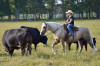 Hershey is also a big help around the farm! He has been used to check fences and cattle very often and is no stranger to a rope and a crazy cow and he has been pasture roped off of. He has been used at the stockyards as well. Anything from sorting, penning and loading trucks- he is familiar with it. He has also been exposed to a lot of wildlife such as deer and turkey. He is also used to the goats, cats and dogs that run in and out of the stall and pasture with him. He is friendly to people, other animals and other horses.