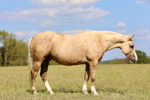 Hershey is a 5 year old crossbred gelding. He stands 15.2 hands tall and he is a beautiful palomino color with a beautiful conformation. He has a super thick build to him and is put together very well. He is 1/4 Belgian and 3/4 Quarter Horse. His dam was crossed between a Quarter Horse and a Belgian and his sire was a Quarter Horse. Hershey is athletic, agile and strong, all while being calm, gentle and reliable. He has obtained all of the best qualities from both the Quarter Horse and the Belgian.