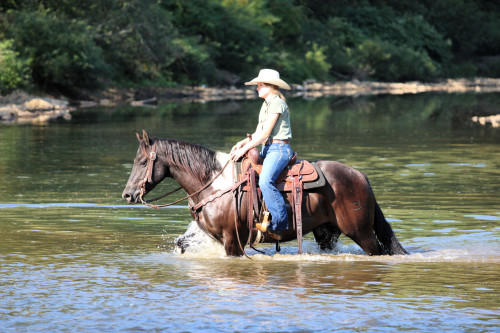 On the trail Beau is simply outstanding. He will ride out all day on a loose rein, happy to travel in a group or head out alone. He has been exposed to dogs, farm equipment, and every sort of country terrain and nothing seems to bother him. Water crossings, wooded trails, open fields, or rocky hillsides, Beau steps through or over it all with confidence and surefooted ease. Whether you are looking for a weekend trail companion or a partner for long adventurous rides he is the kind of horse that makes the journey relaxing and fun.