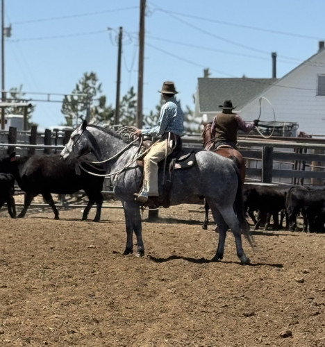 He’s a great cow horse - ropes, sorts, side passes, doctors out in the pasture, opens gates and handles himself well under pressure in and out of the working pen. No challenge is too big for this boy. You can rope about anything - he knows his job. He’s a great partner at whatever task you set out to accomplish