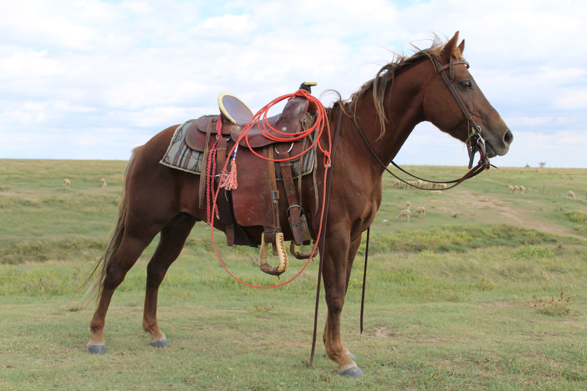 Ariat is a 12 year old Quarter pony gelding. Pefect step up size, he’s any kid’s dream cowpony! He stands 1 inch shy of 13 hh. Solid, small ranch horse been working in the lamb feed lot, checking and gathering out on the pastures. Soft in the mouth, neck reins really good, knows his stuff! I’ve roped, dragged, and doctored ewes off him. No spook, buck, bite, or kick. More go than whoa, very responsive but he likes a job and can go all day beside a big horse. Ariat weighs 640 pounds is stocky and can fit a regular sized saddle.