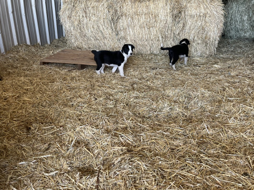 I have 2 puppies left out of this litter. Approximately 9 weeks old as of this posting. Socialized and friendly. One male one female. The parents are both very natural head dogs. I am not a dog trainer at all. The father is long haired black and white, mother is short haired mostly white. See attached video or look up Elmo and Queenie dog breaking fresh weaned calves on YouTube to see the parents working together. Video taken 10/3/25. Call Jacob at 541 705 7105 if interested.