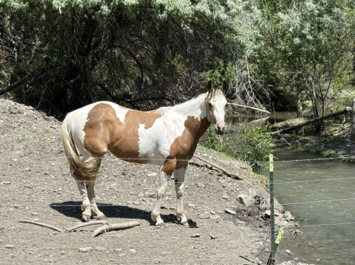 Striking color, proven mind, endless potential. Kitten is a stunning buckskin tobiano mare who turns heads with her unique markings and outstanding bloodlines. This filly is as classy as she is smart, carrying the rare combination of beauty, athleticism, and a willing, people-friendly nature. She is well-handled and already has a solid start in her groundwork—she halters, leads, ties, and trims with ease. Streken High Kitten has been exposed to water crossings, downfall, and plenty of human interaction from people of all ages, taking everything in stride with a quiet and intelligent demeanor. She lives comfortably in a herd, gets along well with other horses, and brings a naturally gentle and versatile personality that makes her just as suitable for a family setting as she is for the performance pen or the ranch. While her mane has a chewed spot from pasture mates, it’s growing back and in no way takes away from her elegance. With her pedigree, color, and strong foundation, Streken High Kitten is a rare young mare with the looks, brains, and athletic potential to excel in any direction. Willing to hold up to 10 days at no charge, and able to assist with transportation at buyer’s expense.