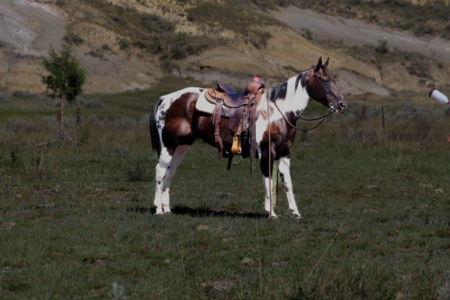 Stormi is a good mare to have around! We have started using her to head steers and she has handled it with ease!! She aims to please with everything she does. She has ranch rodeoed, gathered, sorted and drug calves to the fire. She has an easy to be around personality with a nice confirmation. She stands good to be shod and saddled. Stormi has been hobbled and is good to pack. She is one hand broke and soft in the face with a fancy turn around and a good stop. She’s one you can take use for your main mount! She won’t disappoint you. No buck kick or read!! Will hold for 10 days free after 10 days it’s $30 a day. Can assist in making hauling arrangements.