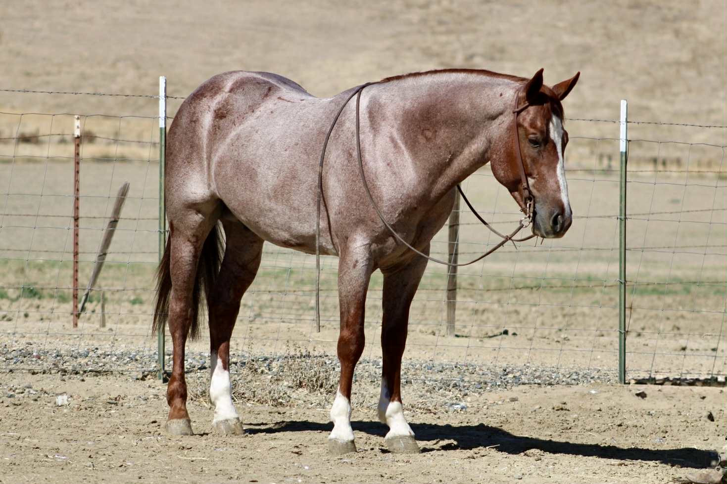 Blink – Safe, Fun, and Fancy All in One, 2019 Red Roan Gelding – 14.3 Hands If you’ve been searching for a horse that truly has it all — and a little extra for good measure — meet Blink. At 6 years old and standing a solid 14.3 hands, this gorgeous red roan gelding has the kind of look that turns heads and the mind that keeps them turned for all the right reasons. He’s as safe as they come, with the training, personality, and presence that make him a rare find. Blink rides soft and stylish in the arena, staying light in the bridle and responsive to your leg. He moves with ease and balance, stops nice, and carries himself collected and correct. He’s cowy, and would fit right into sorting or roping — handy, willing, and naturally talented, yet quiet enough for anyone to enjoy. Out on the ranch or the trail, Blink is rock solid. He’s seen cattle, creeks, mud, steep hills, and every kind of terrain you can throw at him. He’s traffic safe — cars, trucks, tractors, and semis don’t bother him one bit. He crosses water, steps through brush, and handles bridges, flags, tarps, dogs, and all the other ranch shenanigans like a gentleman who’s seen it all before. He’s personable and steady on the ground, easy to catch, shoe, haul, and tack. Blink stands tied, rides off quiet every time, and has the kind of good manners that make him a pleasure to own. He’s the horse you can count on whether it’s a long ranch day, a quiet trail ride, or a trip down a busy road. Blink is the total package — gentle, fancy, and dependable, with just the right amount of class to make him stand out in any crowd. He’s the kind of horse you’ll be proud to own and even prouder to ride. They don’t come along like this often — safe, fun, and full of heart from head to tail. Call or Text Dina with Longhorn Ranch 831-537-1915 – Located in Paicines, California, Nationwide Shipping Available!