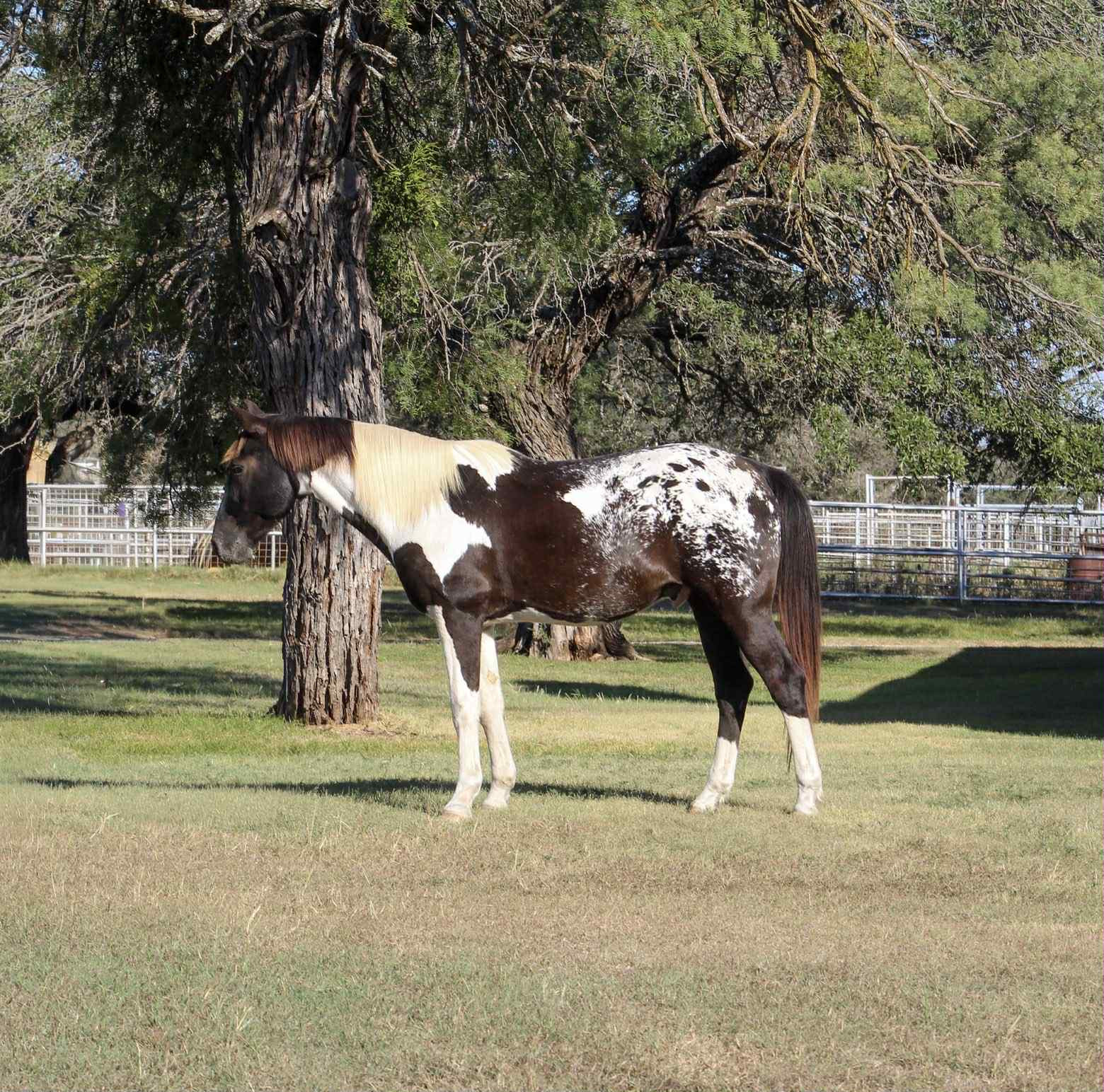 Apache is a wonderful Pintaloosa, that’s a versatile horse, who’s perfect for riders looking for a safe and reliable partner. At 14 years old and standing 15.1 hands tall, he excels on the trails, in western riding, and can even handle some English riding as well. He’s been used by an older lady for the past three years to ride around her property, making him a calm and steady horse with plenty of experience. Apache is super easy to handle—he will stand still for mounting and is ready to go right off. He’s been used for lessons in both Western and English riding styles, so he’s comfortable and well-trained in both disciplines. Because of his gentle nature and training, Apache would make a great starter horse for someone new to riding or looking to build confidence. Apache is super easy to saddle, stands wonderful for the farrier, and loads/unloads like a champ. He checks all the boxes for any family or beginner looking for a pretty and safe boy! If you want a safe, dependable, and versatile horse who’s ready to be your next riding partner, Apache is the perfect choice. Come see him for yourself or we can schedule a FaceTime to meet him! Call or text Makayla with MW Horses at 254-434-8650. Need hauling? We got a list of reliable haulers around the US!