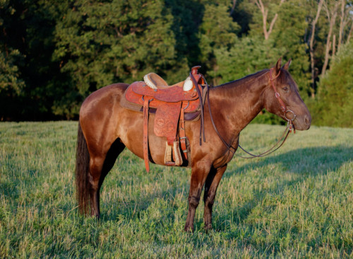 This sweet, willing mare is gentle enough for a confident youth but stout enough to carry most riders. She has a big stop and a soft neck rein, and responds well to leg pressure, making her a pleasure to ride. Whether you want to finish her into a heeler, ranch horse, or versatile all-around partner, Gracie is a solid foundation to build on.
