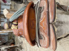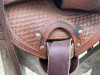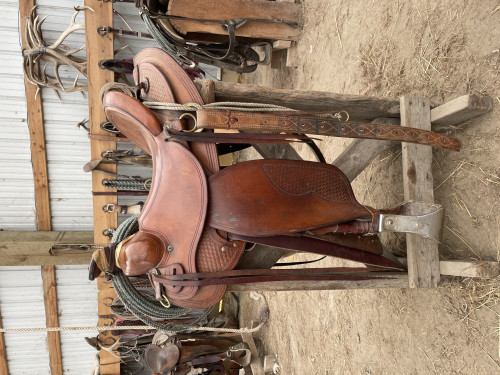 Don built this saddle in the early 2000s on a Sonny Felkin tree with Northwest bars. It hasn’t seen much use. The rivets on the rigging haven’t even been worn. Very comfortable saddle that fits a wide variety of horses. Doesn’t come with pictured stirrups or cinches. I will include the nice set of aluminum stirrups that came with it as well as the original back cinch billets.
