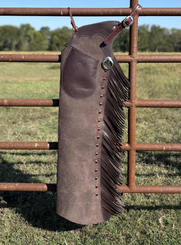 For Sale: DIXON CHAPS Fudge Rough Out Shotgun Chaps with Fringe (#315) #203208
