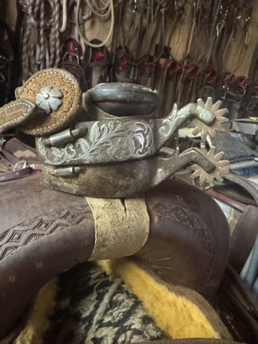 Kerry Kelley spurs w Ross Bullinger straps and Kerry Kelley buckles. In excellent used condition ready to go. 100% in every way. With 0 issues. Great set of ranching or rope spurs. 1 1/8” band. 1 3/4” shank. 1 1/4” rowel. 3 3/8” heel opening. $1,250 shipped in lower 48. Please text or call only. Thank u