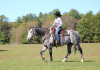 Out on the trail, Silver is a seasoned citizen and the kind you can trust to go anywhere. He’s a point and go type who will willingly cross water, step over logs, and handle any terrain you point him at. He’s been exposed to dogs, goats, chickens, and farm equipment, and never bats an eye. He stands perfectly to be tacked, bathed, and mounted, and he’s great in cross ties. Whether he’s kept in a stall or turned out in the pasture, he’s easy to catch and happy to see you. He is lower to middle in the pecking order.