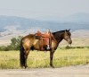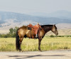 Buddy is a 5 yr old crossbred grade quarter horse gelding that stands 14.3 hands. He is dark buckskin in the summer months and dark seal brown in the winter. He is a very friendly gentle guy that anyone that knows how to ride could get along with. He has been a ranch and trail horse his whole life doing all the ranch chores like pasture doctoring and pushing cows around. He will pull anything you can latch onto. He has a good one hand, neck rein and has all the proper buttons on him. He will step to his correct leads both directions and will lope nice circles. He will side pass to open and close gates and has a pretty good turnaround. He is trained to let you get on him off of a step or fence, simply Smooch to him and he will side pass over and make it easy for you to get on. He crosses water and all the trail obstacles and is a pleasure to ride outside. he is not buddy or barn sour and is use to riding off by himself and is the kind that will go all day and give you everything he’s got. He is a fun little gelding to ride that is fast walking and snappy when you need him to be but always quiet and gentle. He has absolutely no buck in him and is very easy to bathe, shoe, and haul. He will jump in the trailer with no problem and back out like a gentleman. This is a stout made guy with a lot of shape and bone. He’s got a big thick, wavy mane and a thick tail that drags the ground. this is a very nice young gelding at the start of his career that would make someone a great all around using Horse. Whether you want to take him to hunting camp this fall or back to the ranch, he is safe sound and ready to go to work. he is not an arena show horse by any stretch, but has been a working horse his whole life. If you think Buddy might be a good fit for you, give us a call and come and try him at the ranch. For more info call Tom at 406-544-9987.