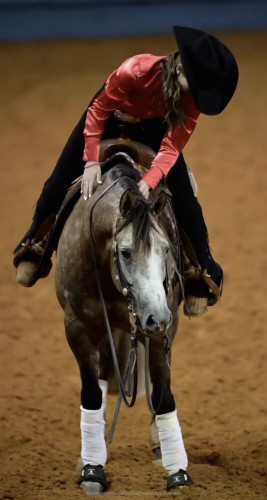 This is a very special gelding that we have owned and trained since he was a yearling. Our daughter at the age of 14 was not only the NRHA Futurity youth Reserve Champion but also finished 7th in the NRHA level 4 NonPro Futurity which is the highest level in NRHA NonPro competition. As a four year old he finished 6th at the National Reining Breeders Classic in the level 4 NonPro division competing against 5,6, and 7 year old horses. He also won the level 4 NonPro go round at the National Reining Breeders Classic this year. At the end of August at the 100X Non Pro Derby he marked a 219 which was his last time in the show pen. To date he has accumulated over $42,000 in NRHA lifetime earnings. You will always be on one of the flashiest horses at the show with this fancy dappled gray gelding. He has a big thick mane and tail. He is a very easy keeper and is very sound and requires no maintenance. Whether you continue to show him at the major reining events or move in a different direction with him, you will find he is an extremely broke horse that tries his heart out. We wish that we could keep them all, but unfortunately we can’t, so we hope you enjoy him as much as we have.
