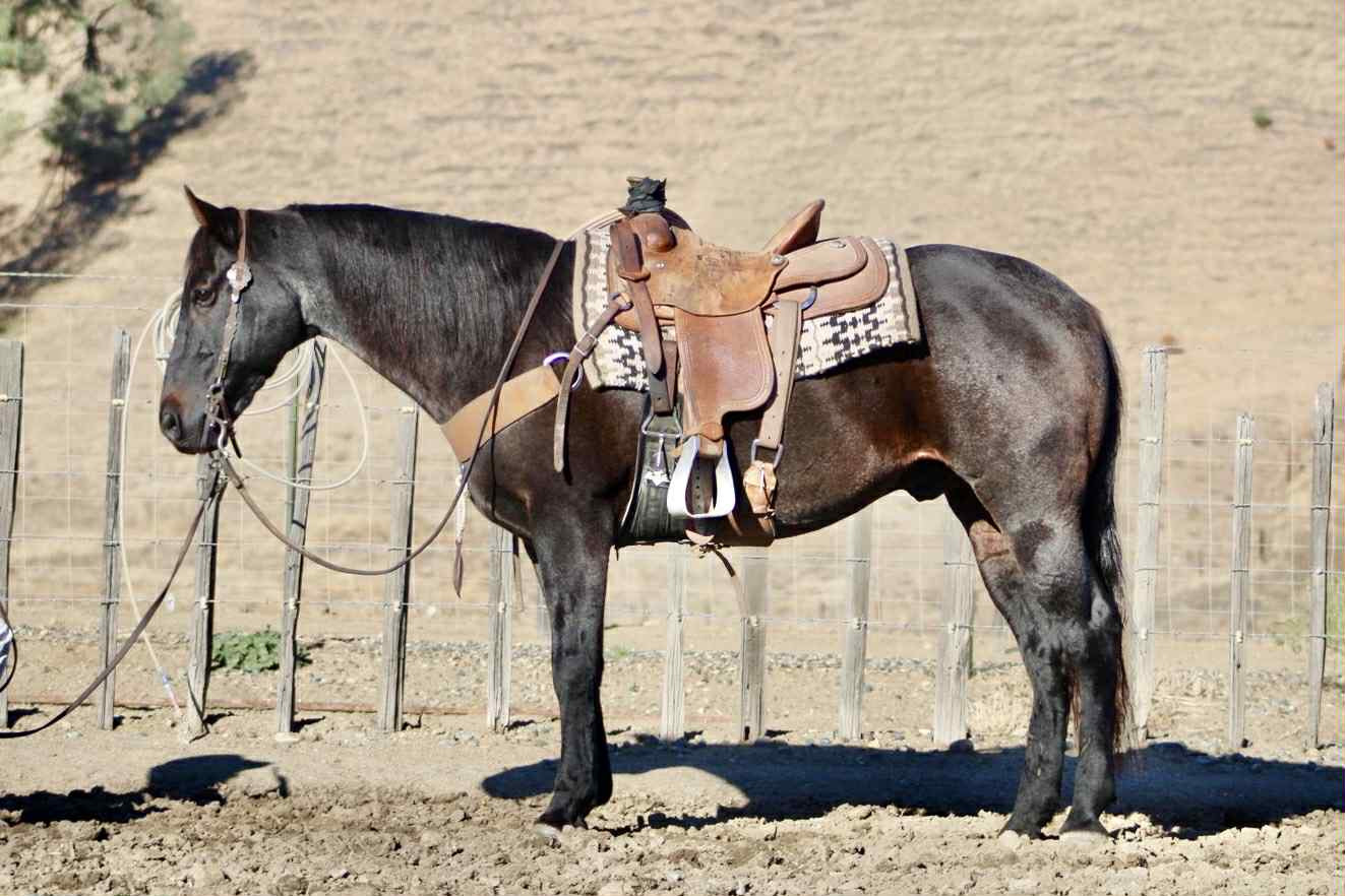 Blue Topaz – Steady, Seasoned, Ranch and Trail Ready... Meet Blue Topaz, the 11-year-old, 15-hand blue roan gelding who proves that calm doesn’t mean boring. He’s the kind that shows up every day with a good attitude, a willing heart, and just enough style to make you notice him. Topaz has done his share of honest ranch work — he’s branded calves, sorted pairs, and checked fence from daylight to dark. He’s the dependable type that doesn’t need convincing: point him at the job and he just clocks in. No drama, no nonsense, no “let’s talk about it” moments — just goes along with it. In the arena, he’s smoother than your morning coffee. Travels low-headed and easy, rolls through a turnaround like it’s second nature, and stops soft and straight without the rodeo theatrics. You can ride him fancy, or ride him relaxed — either way, he’ll make you feel like a hand. Out on the trail, he’s unshakable. Crosses water, logs, bridges, and traffic like it’s his daily commute. Flags, dogs, kids on bicycles — he’s seen it, shrugged, and kept walking. He’s kind to shoe, haul, clip, and catch, and he’s got that laid-back, best-buddy personality that makes him easy to love. If you want a gelding that’s as trustworthy as they come — with a little humor and a whole lot of heart — Blue Topaz is the one. Located in Paicines, CA. Nationwide shipping available! Call or text Dina with Longhorn Ranch 831-537-1915