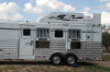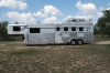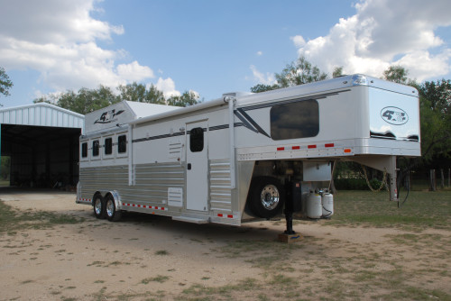 2025 4-Star LQ 4 Horse Slant –10’8 Outback Customs 8’-0” x 28’-0” x 7’6” tall. 2- 8000# torsion axles, 12,000# single leg hydraulic jack w/double aluminum battery box. Added safety features; 4 wheel electric over hydraulic brakes, 5 – 245/70R 17.5 18 ply continental radial tires, alcoa wheels. Drop down windows w/drop down window bars SS, drop down windows CS, 3 – 18” deep lowered trough style feed mangers, lined and insulated roof in the horse area, 8’ combo pod w/ 4.0 Onan gas generator/ on the roof (60 hrs.). 10’-8” custom Outback interior, sofa sleeper with half dinette, 7cu ft. refrigerator, porcelain sinks and toilet, radius shower and 6 gal LP hot water heater. This trailer has been pulled less than 3,000 miles. Barn kept, excellent condition. Selling due to injuries from a horse accident limits future traveling. Located in Hondo, Texas. Call or text 830-570-3433. $99,999.