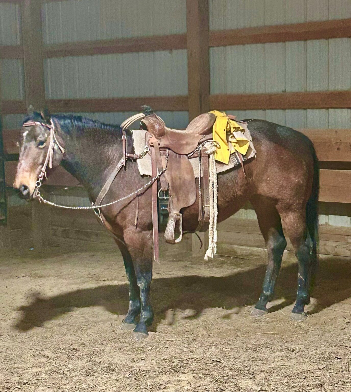 Nice, quiet, 14.2 grade gelding that’s done it all. Started as a 3 year old. Sort yearlings, drag calves, solid pack horse, rode in parades, swim the river, and put your wife on him. I’ve heeled a few slow steers. Gonna make a jam up kids rodeo horse in a few years. He’ll be as patient with you, as you are with him. Selling only due to family circumstances.
