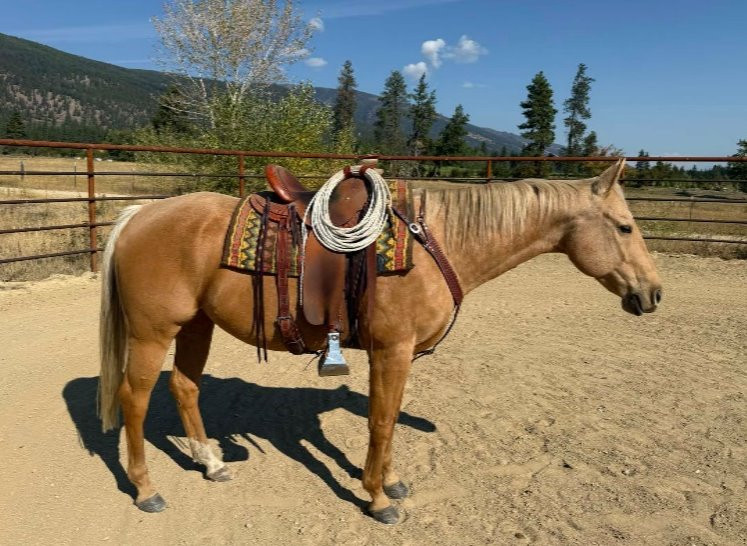 Sunny is a beautiful gelding standing 15.2hh and 1200 lbs. Super athletic and has been used all over the ranch. Worked, sorted, and roped hundreds of cattle and has a sweet and gentle disposition. Sensitive, soft, and a pleasure to ride. A fun horse with a great mind to saddle up for any sort of job.