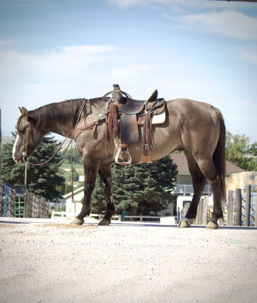 Tank stands 15.1 hands tall, weighs 1200 lbs and wears a number 2 shoe. Tank has been a using horse his entire life. He has been used at the feed yards, sale barns, and on the ranch. He gets gates, watches a cow, works a tub and alley, loads and unloads trucks, and all the other ranch chores. Tank is gentle, good with his feet, easy to catch and just a good gelding to be around. This gelding will not only put in a days work, he can also come home and mope circles in the arena. Tank knows both his leads and has good stop with a smooth and correct turn around. He could continue to be an outstanding using horse or just cruise the trails, whatever is good with Tank. Come try him before the sale!
