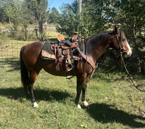 Rose stands at 13 hands and heavy built. She is great on the trails and at play days. She is super gentle, kid safe, no kick, buck, or bite. No bad habits, will go where u ask, cross the creek or wherever u point her. She is broke for any level rider. Really great pony.