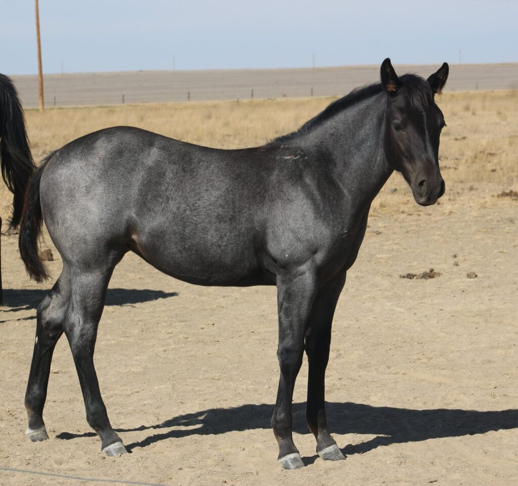 Horses For Bid at Auction: LF THAT GIRL – 2025 AQHA Blue Roan Filly x SR Kinenos Badger x Kinenos Moon out of RCL Feisty Kat x Kats Blueboy Hancock! SOLD #203486