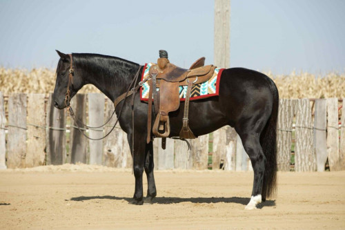 If you’re looking for a black gelding with all the cowboy extras, take a hard look at Smoke. He stands 15 hands, built right, and bred for performance with Peptoboonsmal on his top side. He’s sharp-looking, strong, and athletic, the kind that turns heads saddled up and tied to the trailer. Smoke has been used on the ranch and knows what a real day’s work looks like. He’s crossed every obstacle in his path, from water to downed timber, and he’s the kind you can trust to get you where you’re going. He’s also been in the thick of it, catching wild cattle outside, proving he’s got the grit and cow sense needed for serious ranch work. In the arena, Smoke has been slowly and correctly started as a head horse. He’s showing promise with ease of movement, plenty of run, and the kind of presence that makes you want to swing a leg over him. With his foundation, good looks, and ability, Smoke is the kind of horse that working cowboys and ropers look for—the real deal that’s ready to go on with in any direction. 100% Sound, Safe and Gentle. Contact Jared Meyer with any questions or to schedule a time to see this horse.