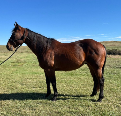 Jay has spent the first part of his life as a ranch horse. He’s done most anything a cowboy can do with one. Ready to start as a rope horse, or just take him back to the ranch. He is the harder to catch type, but has good barn manners. We do not recommend him for true beginners because of the occasional snort and blow, but he hasn’t given us any trouble.