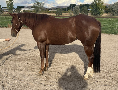 This is a pretty mare with a good start. She wants to turn around and stop. She is a pretty mover and she is very pretty made. She is just under 14.3 hands and is stout. Will make one to rope calves or heel on. She has about 6 months of riding and is riding round one handed. 100% sound with no issues. My 17 year old daughter will ride her through and has spent significant time on her.