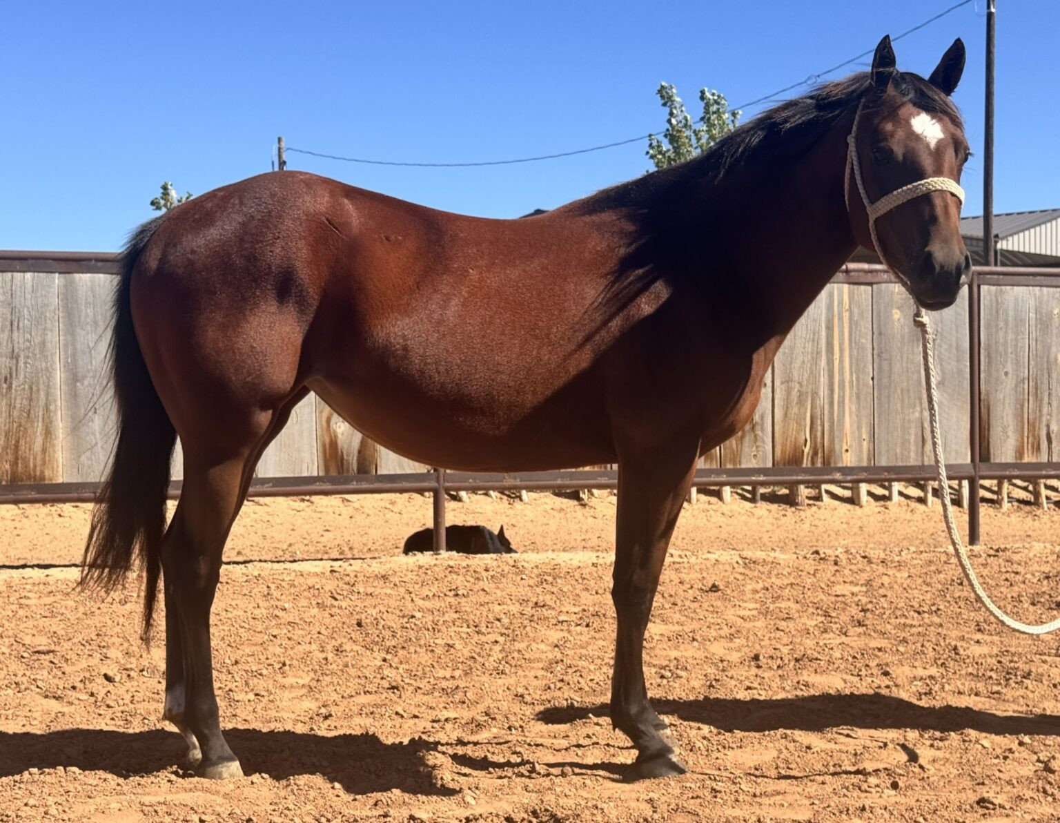 This is a classy, high quality, athletic filly with a lot of cow sense breeding. She has great conformation and is a nice size. She has a stout build, good disposition, and great bloodlines out of Holidoc. She is halter broke and is ready for you to start your own way.