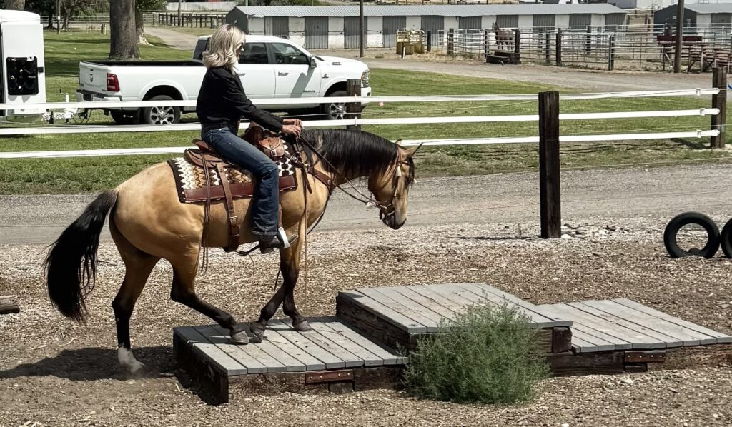 Gorgeous mare that is ready to go anyway you want to go. Would make a great ranch horse. She has 2 months reining cowhorse training from Roeser Ranch as well as 2 months barrel training from Ariel McClure. Loves to trail ride. Walks out and likes to lead. Bold not spooky. Born with no buck or funny business. Gentle. Sound.