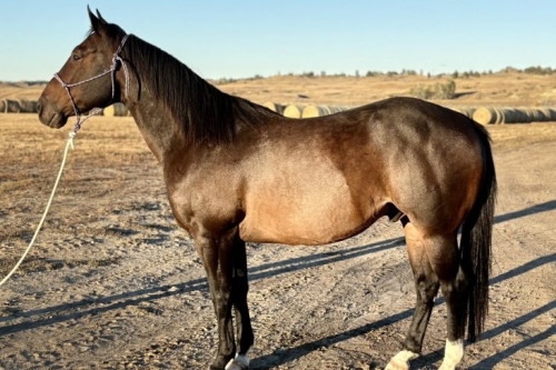 Flint is your perfect ranch and mountain horse. He stands 15.1hh and built tough. He has drug tons of calves to the fire, Doctored outside and rode pens. He has been used in the mountains, crosses water, logs and anything you throw in front of him. He is super handy broke and easy to get along with. He can get a little tight with time off but not a bronc.