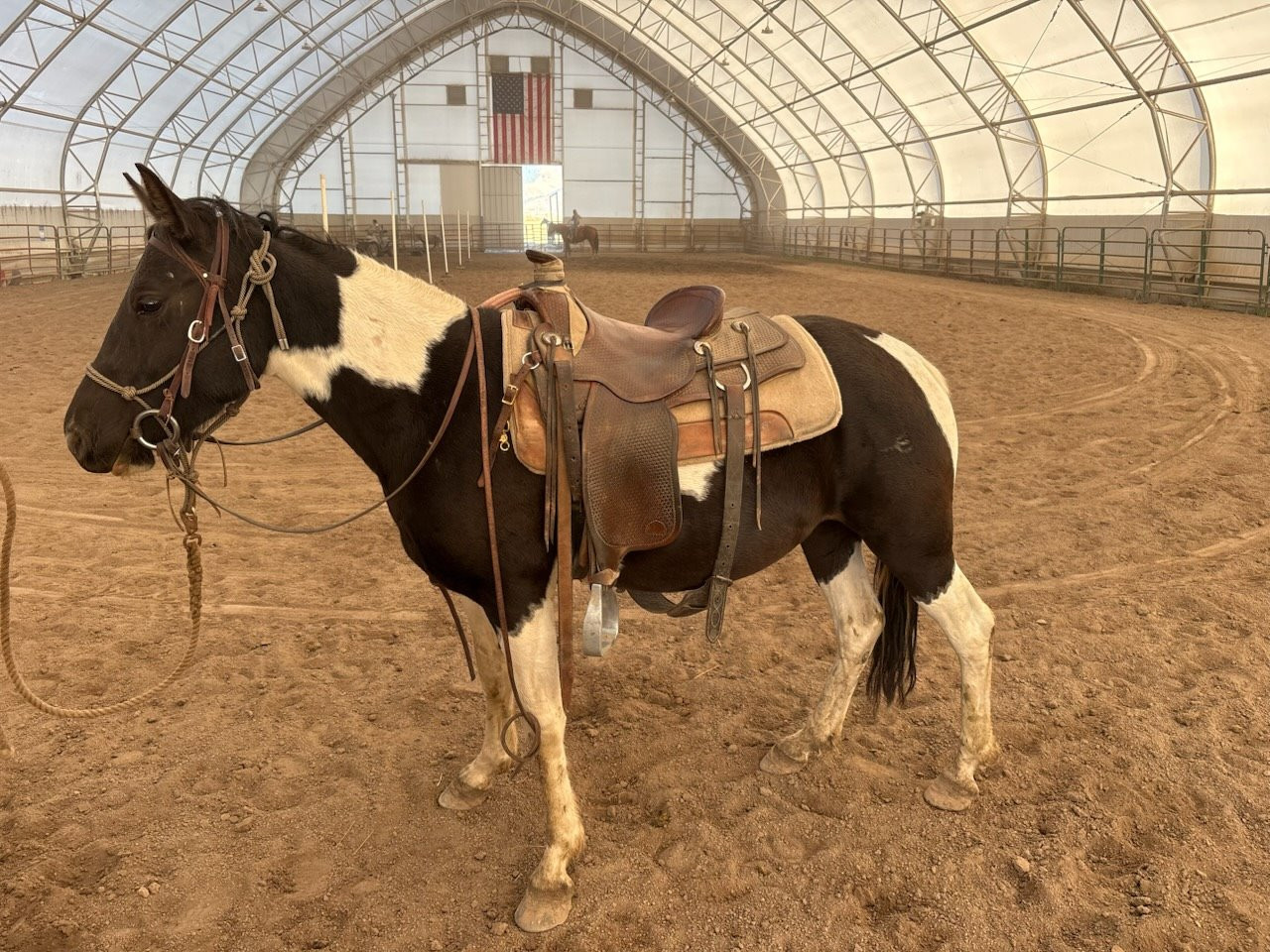 14.2 hand gaited 1/4 draft filly. You can really cover ground on this girl. She is young, but she is gentle as the day is long. My kids can ride her, she follows great, crosses water, deadfall. As a lead horse she isn’t great yet, but she could be. Obviously she can really cover country if you ask her to, but she is content to follow a quarter horse in the mountains at a slower pace as well. She has been packed as well, but not heavy due to age.