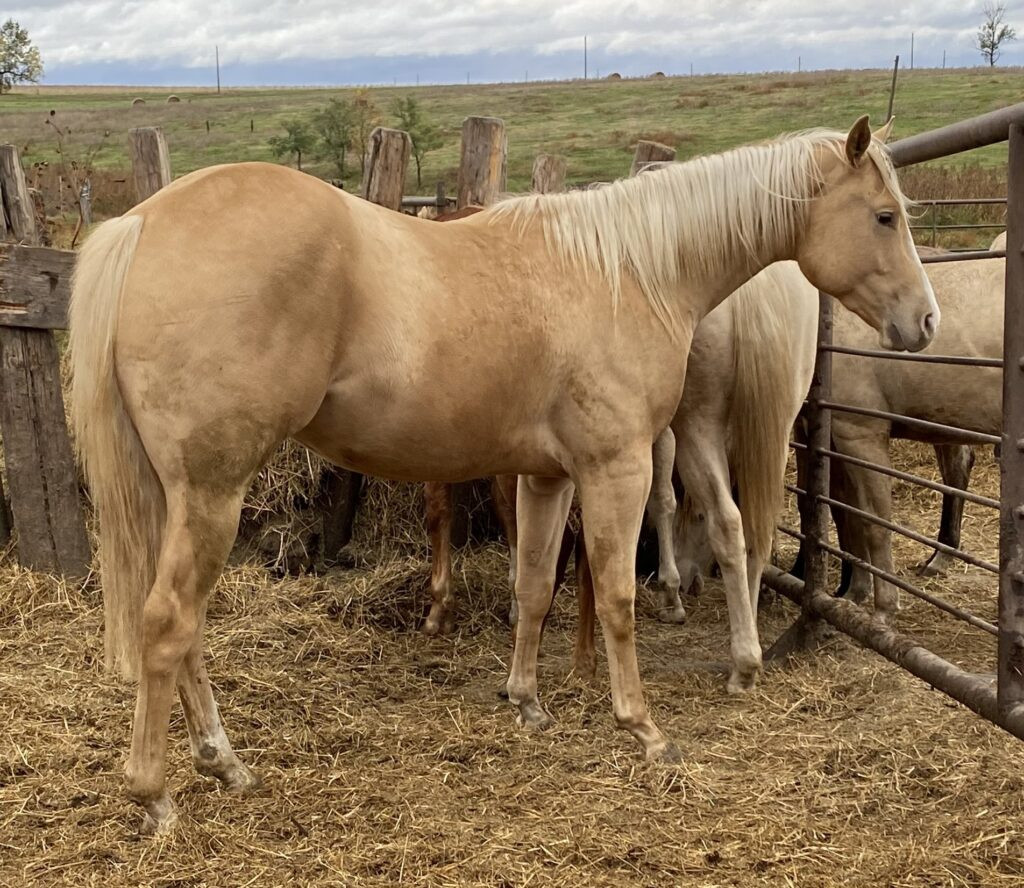 Horses For Bid at Auction: ASHWOODS DUN IT – 2023 AQHA Gold Champagne Gelding x Ashwoods Top Design x Slicks Top Ashwood out of AshwoodTopHollywood x Lil Bita Hollywood! SOLD #203614