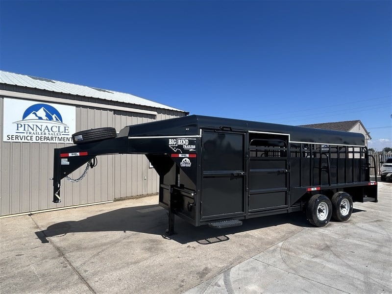 Pinnacle Trailer Sales LLC NEW ARRIVAL! 2026 Big Bend 20’ Stock/Combo! 4’ walk through tack room, swing out saddle rack, 3 on each side, blanket bars, bridle hooks, brush trays and 14 Ply Tires. 1 Center Gate with Sort Gate, two 8’ stock compartments, rear gate with 1/2 slider, Led Lights, and lifetime Smooth Rubber Boards! Roller Pins on Back Bumper! Financing Available! Trades Welcomed! Nationwide Delivery! For more information call our sales team at 970-454-5415 or text us at 970-219-5699.