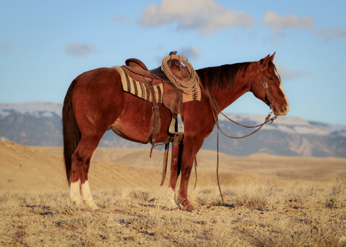 Go! Diego! Go! If you’re looking for a been-there, done-that gelding with plenty of life left, here he is! Diego may have been born in 2010, but in his mind that was just a couple of years ago! He’s full of energy, heart, and try — always ready for his next adventure. Diego is as fun as your favorite carnival ride, as dependable as a Toyota Corolla, and has the work ethic of the Energizer Bunny. He’s quick on his feet but never hot or jiggy — always willing, responsive, and eager to go to work. Over the past year and a half, he’s been my go-to horse for everything from wrangling horses and gathering cattle to halter breaking colts and leading out young pack horses. If I can do it horseback I’ve done it on Diego! In the arena, he’s just as fun! Diego has a solid one-hand neck rein, moves lightly off your leg, picks up both leads with ease, has a smooth pivot and nice side pass. On the trail, Diego is sure-footed, steady, and sane. This is one quarter horse gelding that will make your gaited horse friends jealous with the ability to walk fast or slow he specializes in meeting the riders needs . He crosses ditches, logs, creeks and anything else that may come across your way without hesitation. I have ridden him all over the desert and mountains and he is one of the most sure footed horses I’ve ever ridden! Diego brings all the fun you could want paired with the dependability of the seasoned horse he is! He’s truly been there, done that, and is ready for his next adventure with you! Stands well for the farrier and vet, loads and hauls like a pro, and loves baths. PPE welcome at buyer’s expense. Up to date on shots and Coggins. Ridden by: Nicole Mitchell