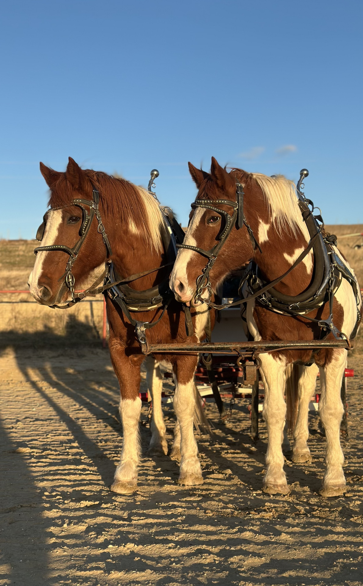 Mike and Ike, are the most adorable and lovable Percheron cross paint team. Mike is 19yrs old and Ike is 17yrs old. Don’t let their age fool you these boys still have a lot of go left in them. They would make a fantastic starter team for someone just getting into drafts or someone looking for a team as a hobby. These guys love the attention and the crowds. They’ve worked in the hay fields, parades and other events. Good to shoe and great to be around. Located in Buffalo Wy
