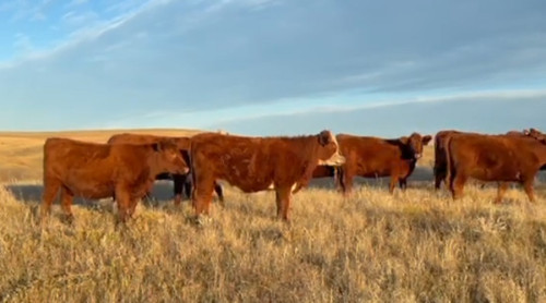 Want fancy? Here you go. This is a really nice group of 62 head of Red Angus heifers that are absolutely stunning. They’re 1-iron and come off a long-running Red Angus program that’s been using registered Red Angus bulls for over two decades, so you’re getting some really good genetics here, especially for a commercial group. They’re AI’d to calve May 17th with TJS/Berwald 890 and then cleaned up for 45 days with TJS and Calvo low birthweight Red Angus bulls. About 84% of these heifers are going to calve in that first cycle. Right now they’re weighing in around 850 pounds and will mature into that 1150 to 1200-pound cow range. They’re very gentle, used to rotation grazing on poly wire, and they handle quietly whether you’re working them from horseback, four-wheelers, or with good dogs. They’ve been on a great health program with CattleMaster Gold FP5 and StayBred VL5, EID Bangs tags are in place, and they were preg checked on October 27th. All in all, this is a fancy, high-quality commercial Red Angus group backed by proven genetics and data that assure you of the future and history of the cattle—you know exactly what you’re getting, and they’re worth every dime here!