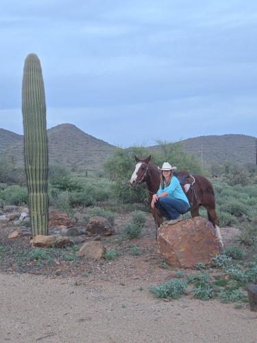 We’ve owned Catch for about a year. He came to us with a background in calf roping and ranch work. While he can get a little hot in the arena, he’s absolutely in his element on the trail.