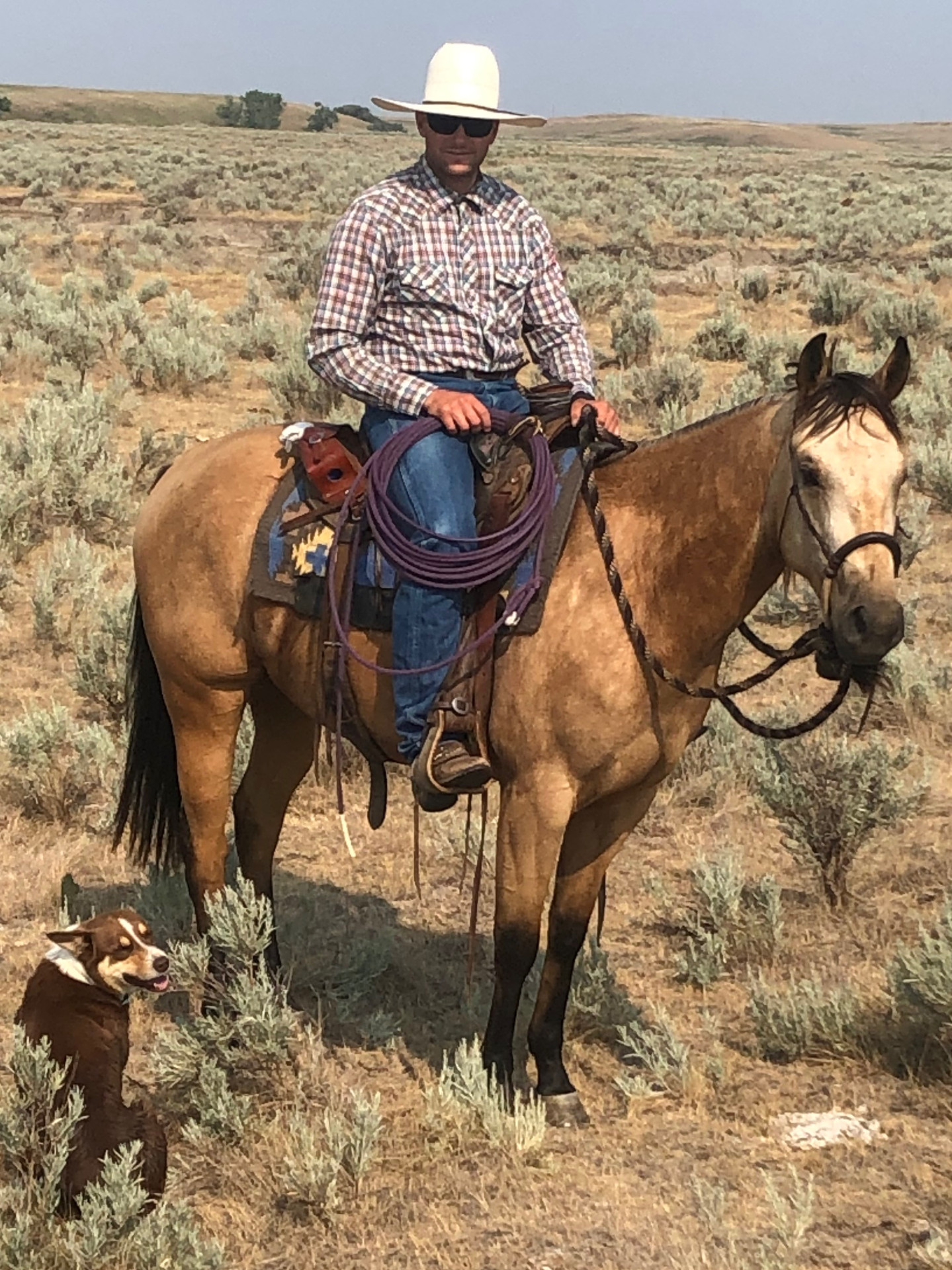 Brew is a 7 Year old Buckskin gelding that has been used for ranch work for 5 years on a big outfit in SW North Dakota. He has been involved in most all aspects of horseback ranch work. This horse really excels at making outside circles gathering big country. He has a big motor, a ground covering trot and he can go ALL day. He’s been used to tag calves, doctor outside, brand and work in the corrals. Brew gets along fine in a herd, slotting in towards the bottom of the pecking order. He has good black feet and is easy to trim/shoe. Easy keeper, easy to catch.