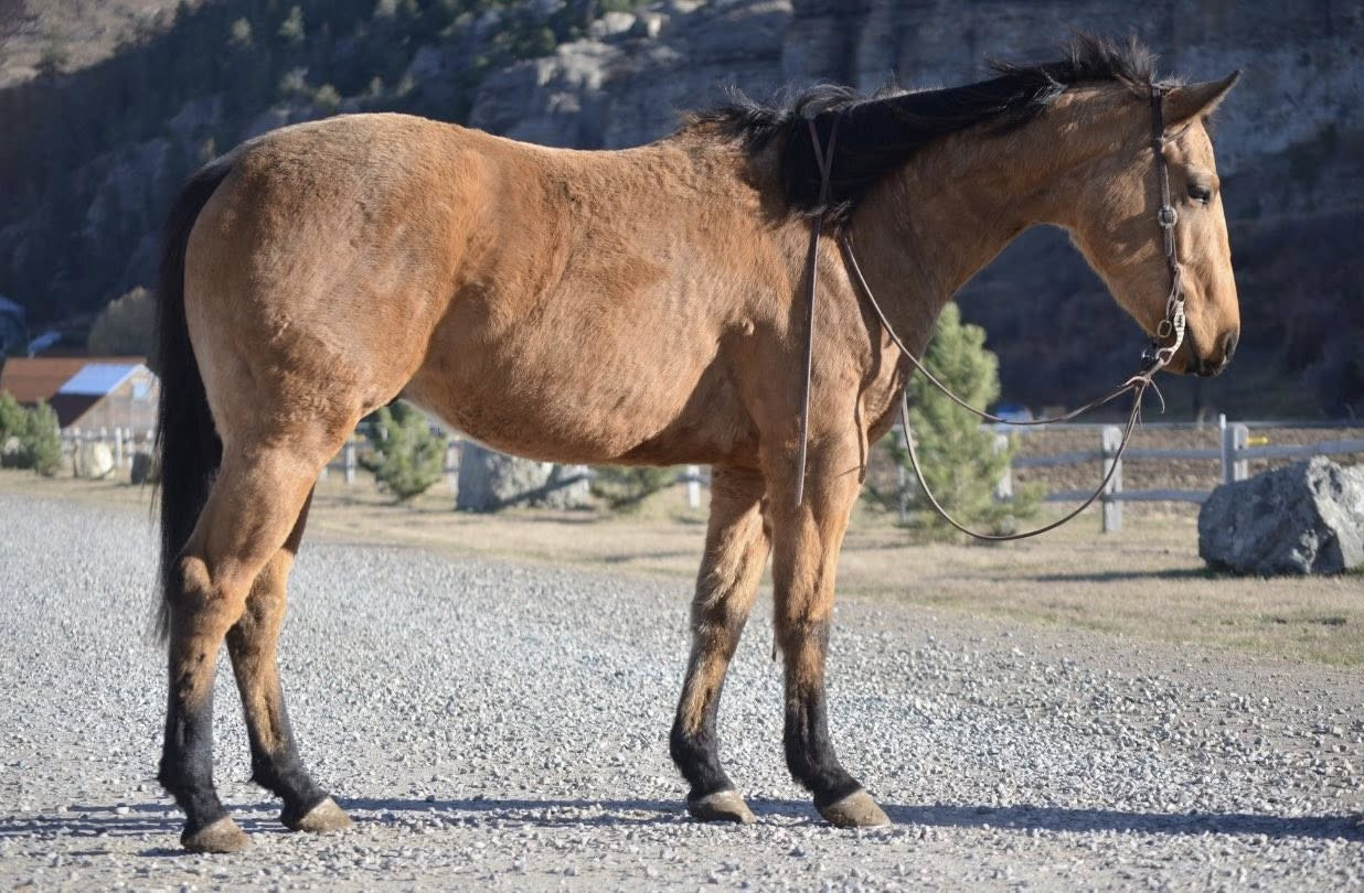 APHA registered buckskin gelding! We call him Buster! This stand out gelding has been a true pleasure to have here in our program! He’s GENTLE, so easy to be around, very quiet and talented! Nothing fazes him. Ride him in the back country pushing cattle, pack on him, ride him in the arena, calve on him or just put him in the pasture to look at! He has a solid foundation and is ready to be taken to do a job! He is in his everyday clothes living out on the ranch and being used like any other horse in our program! He has around 60 days of arena ridding and a good bit of time on the outside. He lopes around correctly, turns around, stops and is starting to ride pretty decently one handed. We have roped a few cows on the outside but mainly just tracking the sled in the arena. Easy to shoe and he takes no maintenance at all! In the right hands he has a lot of potential in the roping pen or on the ranch. He does not sell as a beginners horse just because he is not finished yet! Will keep for free up to 10 days after the sale ends!