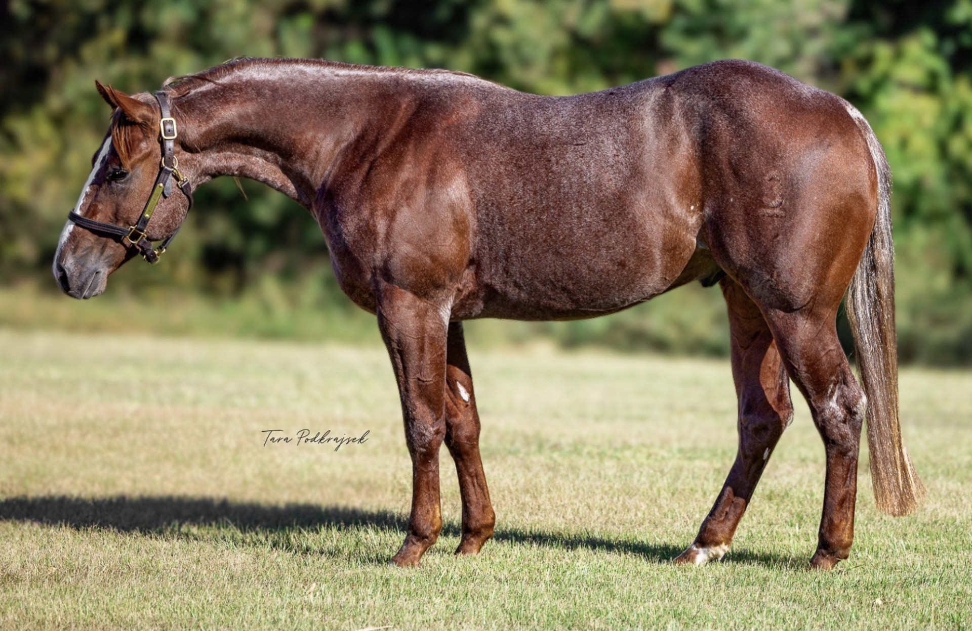 2023 red roan stallion prospect by Stevie Rey Von and out of Bingo With Grandma