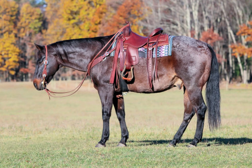 Introducing Dalton! He is a 9 year old Grade QH gelding that’s a bay/Blue roan. He might not be the most attractive horse you have ever seen but he is most definitely one of the safest, most kind, and EASY EASY horses you will ever ride! Dalton is the type of horse that is laid back and will do whatever you ask of him with a willing attitude and calm chill demeanor. He’s a big puppy dog! Literally he wants to be in your pocket. He is easy to catch, easy to lead, easy to halter, bridle and saddle. He stands stock still being tied. He would make a fantastic beginner horse or lesson horse for any program!