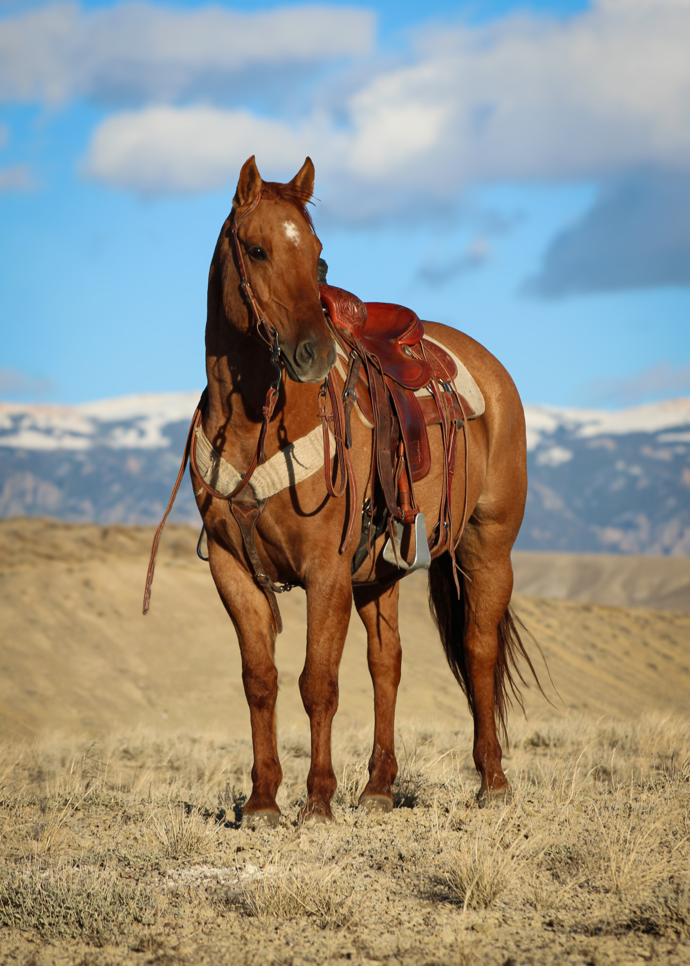 We’ve used Dawson extensively on the ranch — wrangling horses, doctoring calves, and gathering big pastures. No matter the job, he’s always at the front of the group, eager to get it done. Dawson has been ridden all over the ranch from the top of the Bighorn mountain summer pastures, to the hayfields on the home place, handling every kind of terrain with confidence and ease.