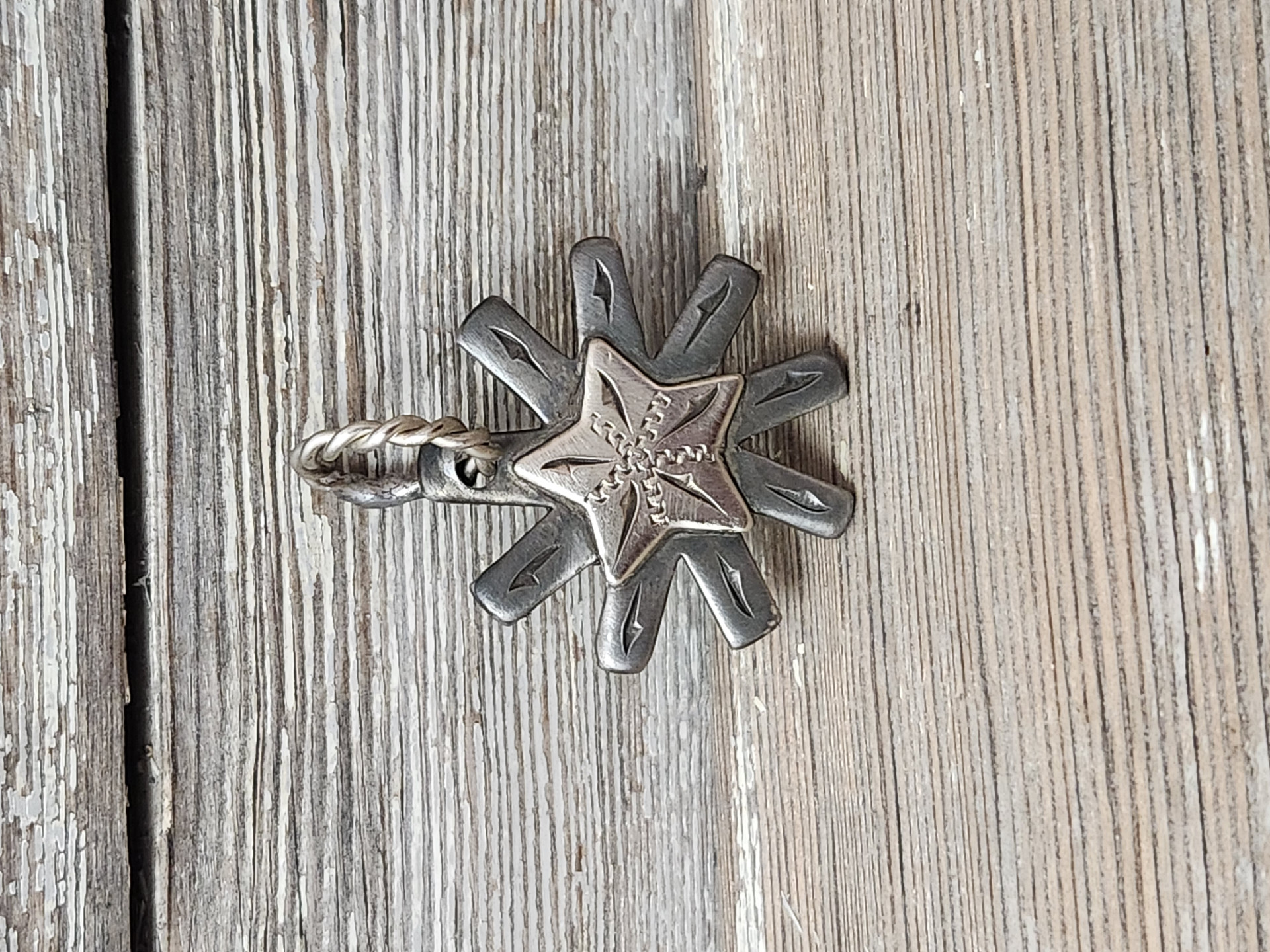 Rowel measures 1 1/2" in diameter. Overlaid with a nickel silver star. Made by Matt Kincaide of Delta, Colorado. $95 shipping included. Thanks for looking!!