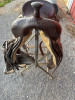 Really nice Vinton ranch cutter w border tool. 17” seat. Strings atw around and silver conchos. Has seen light use and is in Excellent Condition. 100% tight and sound in every way. Has a skinned place on the horn. However the horncap, leather wrap and horn itself is all tight and not compromised in any way. Strictly cosmetic. Will come ready to ride w stirrups, all billets, fry and back cinches. $1600 shipped to u in lower 48. Please text or call only. Thank u