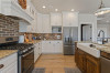 Inside, the main level features a bright and airy open-concept layout with large picture windows that fill the space with natural light. The kitchen is a showpiece with granite countertops, a bar-height island, farmhouse sink, quiet-close cabinetry that extends to the ceiling, and a hidden walk-in pantry offering plenty of storage. The oversized laundry/mudroom, located just off the garage, includes tile flooring, additional cabinetry, and ample space for organization. The spacious primary suite offers a private en-suite bath and walk-in closet, while a second bedroom and full bath complete the main floor.